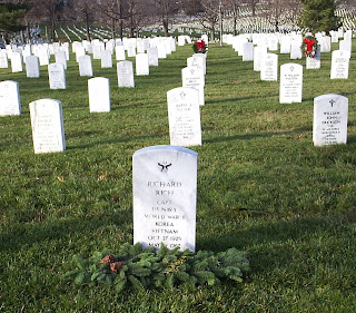 Uncle Dick Rich is in a flat part of the cemetery (instead of mostly vertical). The site looks over the Pentagon, the Capitol, and the Washington Monument: